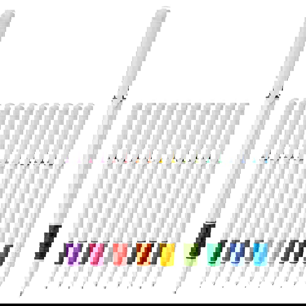 The S40 Grip ball pen is a popular pen because of the coloured part underneath printable clip which lends style and character to the pen and the grip on the pen which has the same colour as the clip. The white barrel can easily be customized with an imprint. It includes a pusher mechanism and a Toppoint jumbo refill with blue writing ink. The hardcolour pen is made of ABS and is made in Europe. From orders of 5.000 pieces, you can choose your own colour combination.