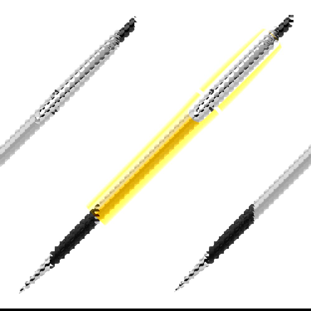 The classic and elegant hardcolour Semyr ball pen with coloured body. The grip, pusher and ring in the barrel are black. The pen comes with a Jumbo refill with blue writing ink. The pen has a pusher mechanism and is made of ABS, made in Europe. From 5.000 pieces own colour combinations possible.