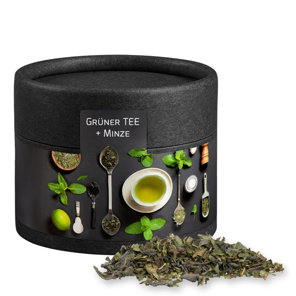 Green tea with mint, ca. 10g, cardboard can mini black