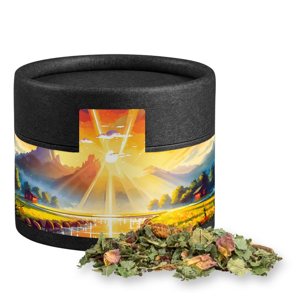 Herbal tea happiness, ca. 17g, cardboard can mini black