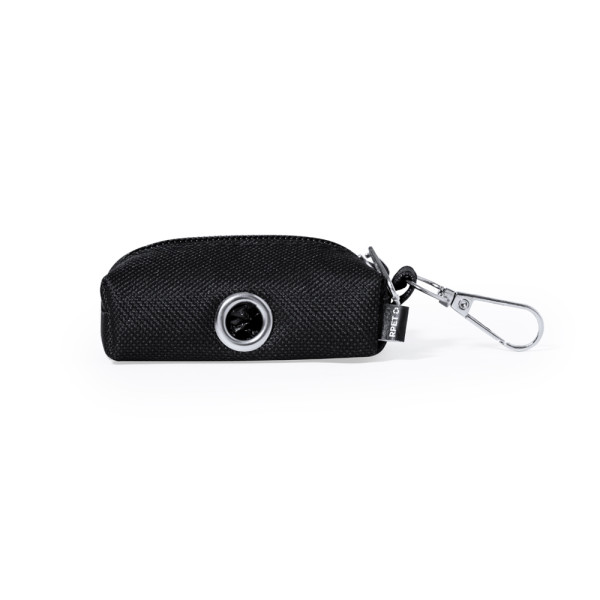 Pet bag dispenser made of RPET. Original design in the shape of a coin purse with zip and a metal ring to easily remove the bags. Easy to carry using the integrated carabiner. With 15 biodegradable bags included and available in a variety of colours.RPET material is made from recycled plastic, thus promoting the reuse of plastic waste and helping the sustainability of the planet.