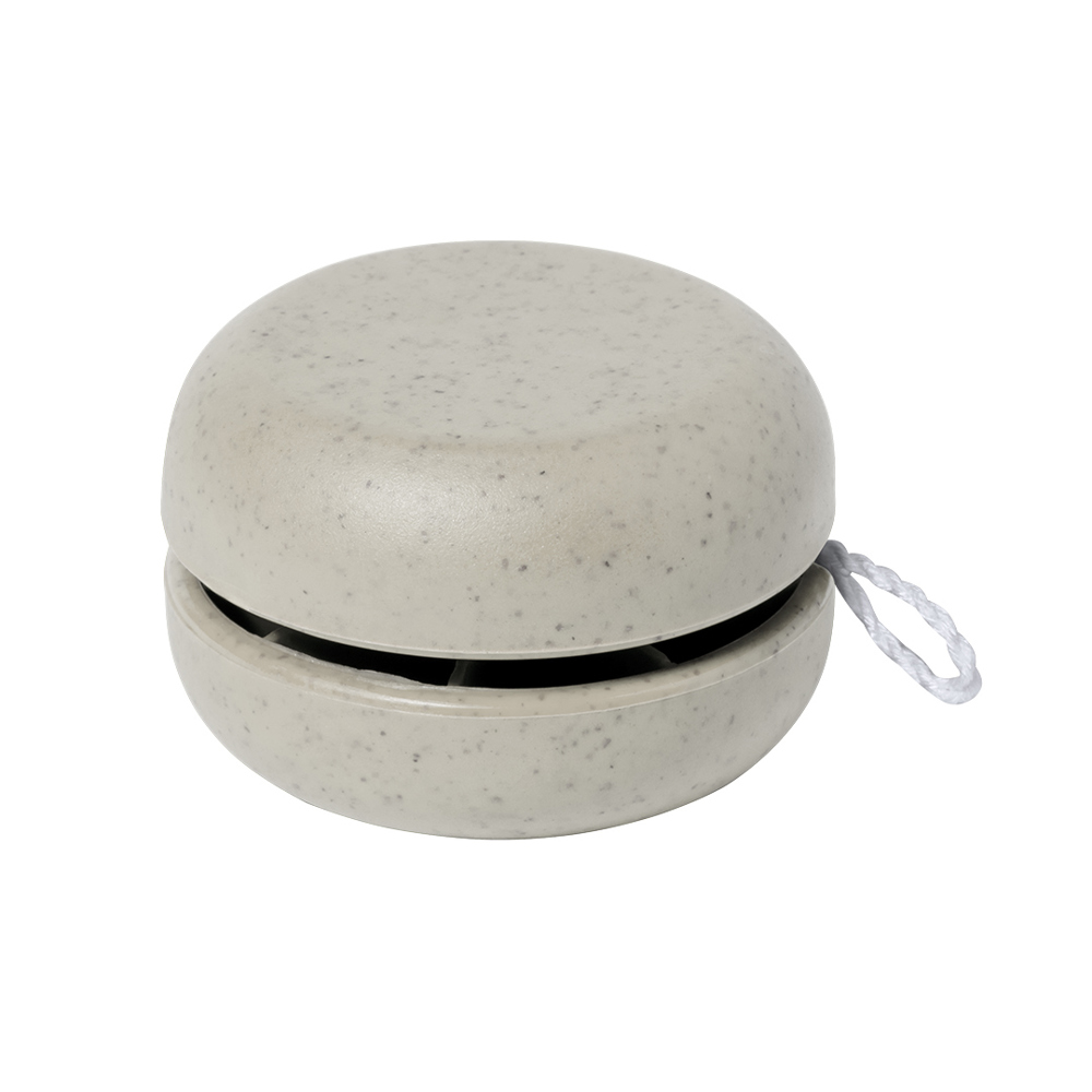 Fun yo-yo made of resistant wheat straw., to recall the most entertaining classic games. Available in a variety of bright colours. With a 100 cm, cotton braided yarn in white.Wheat straw promotes the use of natural raw materials, thus reducing pollutant emissions.