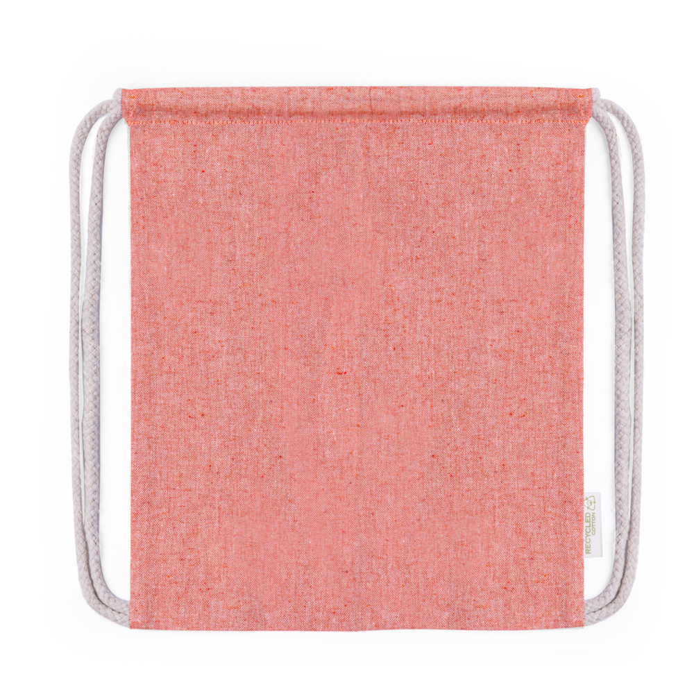 Drawstring backpack in Recycled cotton material 120 g/m2. Self closing strings in cotton, with eco label on one side and available in a wide range of nature colours. Resistance up to 4kg in weight.