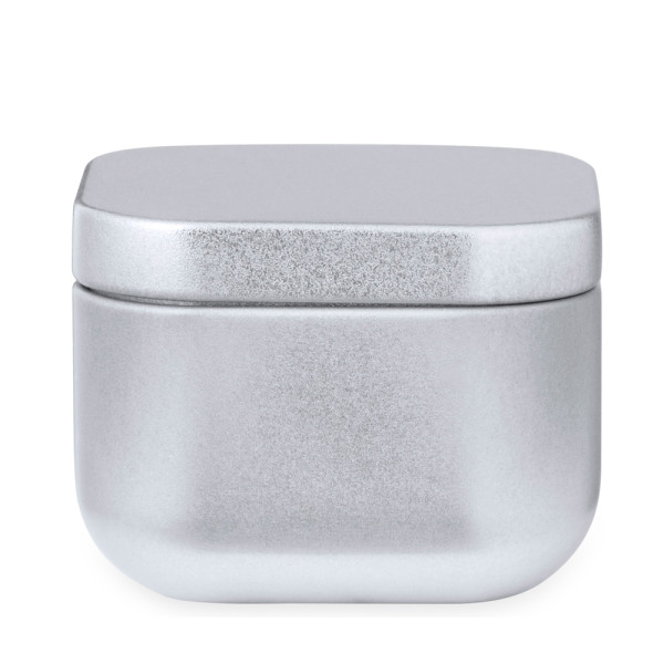 Scented candle in metal jar and in elegant colours, with vanilla fragrance. Presented in an individual kraft design box.