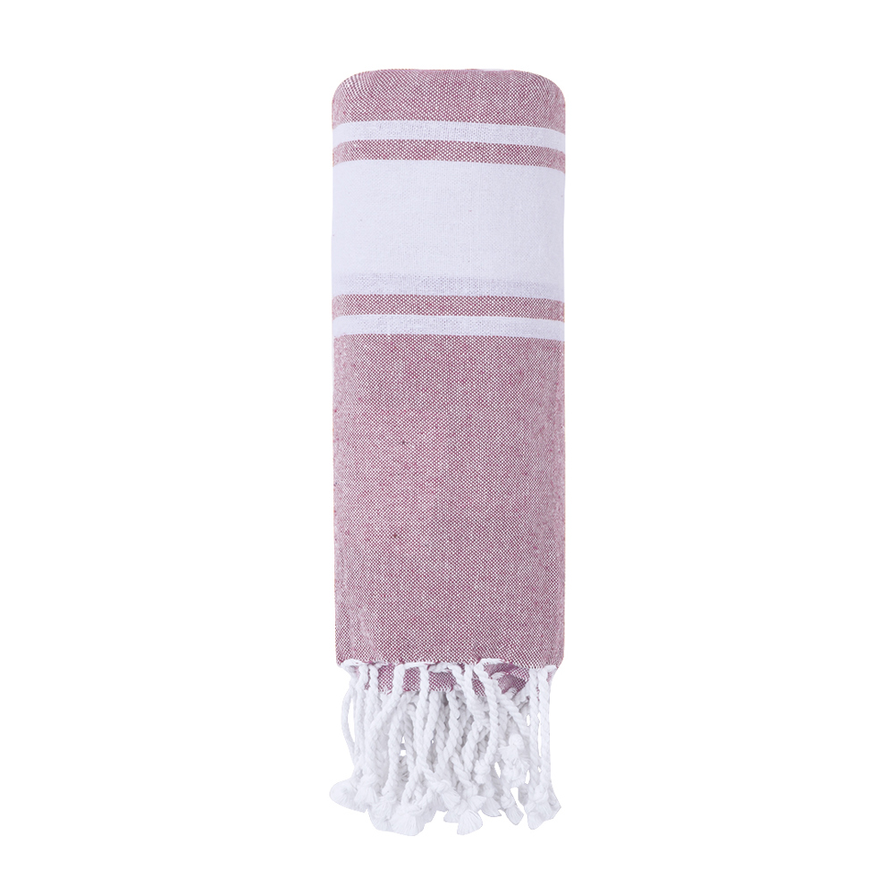 180x90cm pareo backpack, manufactured in resistant recycled cotton 170g/m2 and in different colours. With a special folding system for easy transport that turns it into a drawstring backpack . Recycled cotton label on outside and presented in an individual bag.