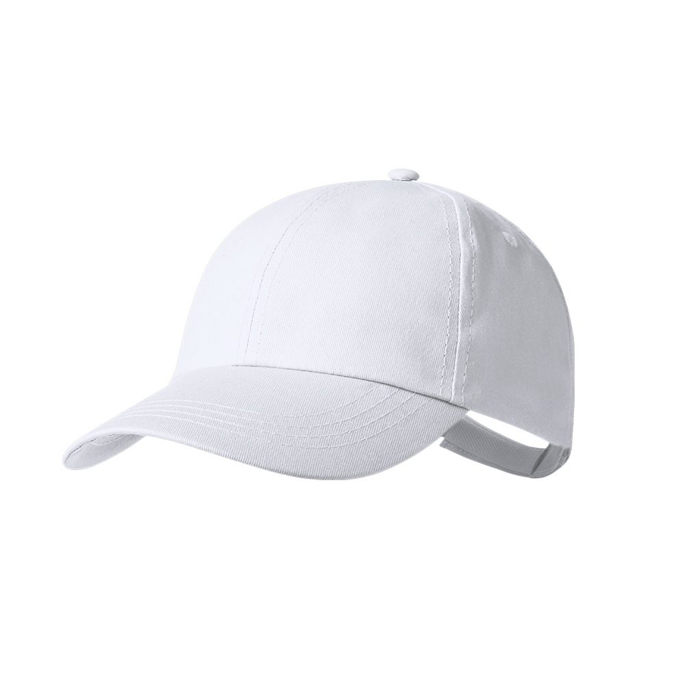 Comfortable 6-panel cap made of cotton material. With embroidered holes for ventilation and a practical adjustable velcro fastening. Available in a wide range of colours.