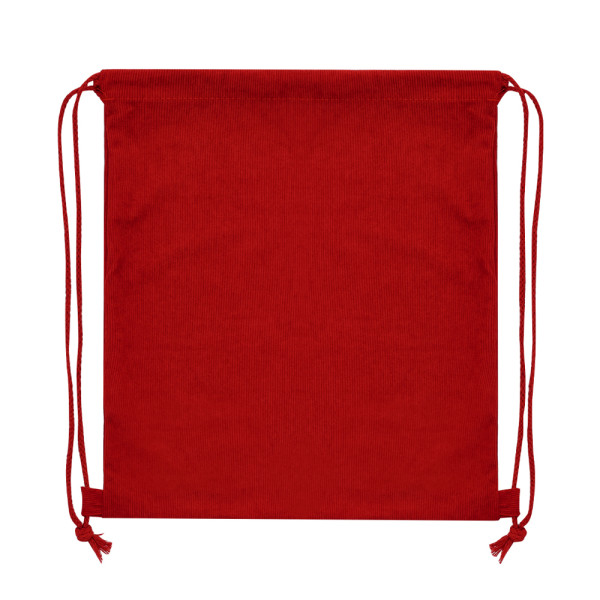 Drawstring backpack made of durable polyester corduroy. Stitched finish, with matching strings and side reinforcements. Available in a wide range of colours.