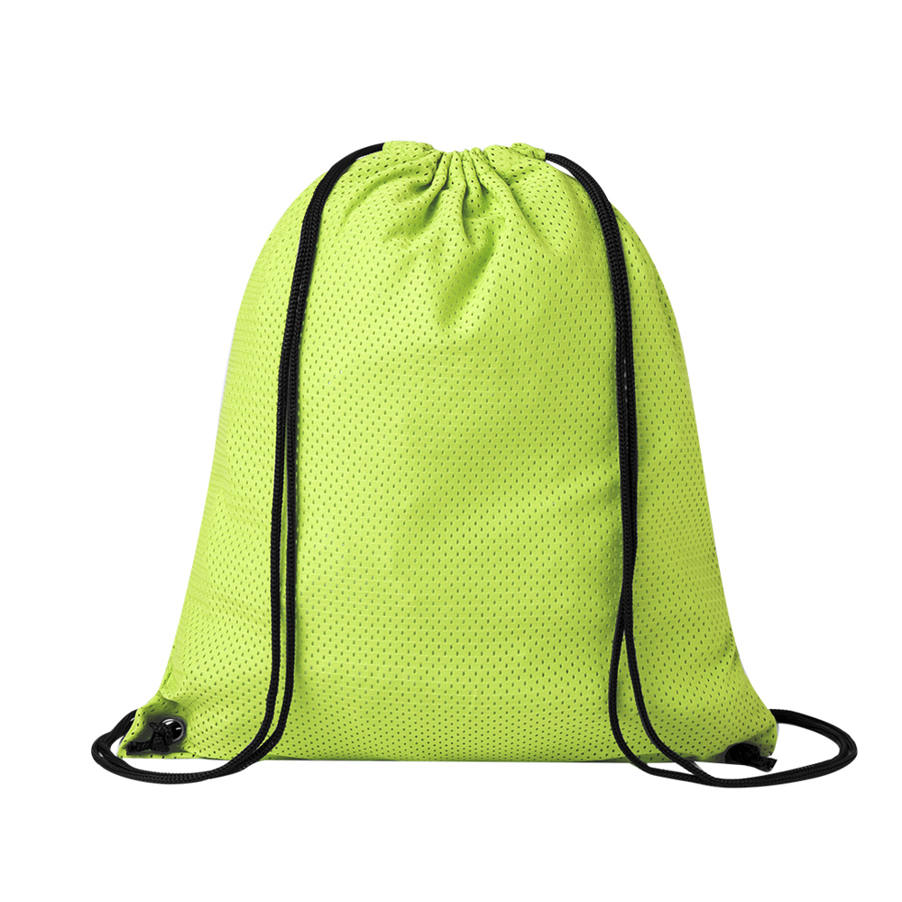 Soft polyester drawstring backpack. It has self-closing strings and metal reinforcement eyelets. Available in a wide range of colours (white colour specially made for sublimation printing).
