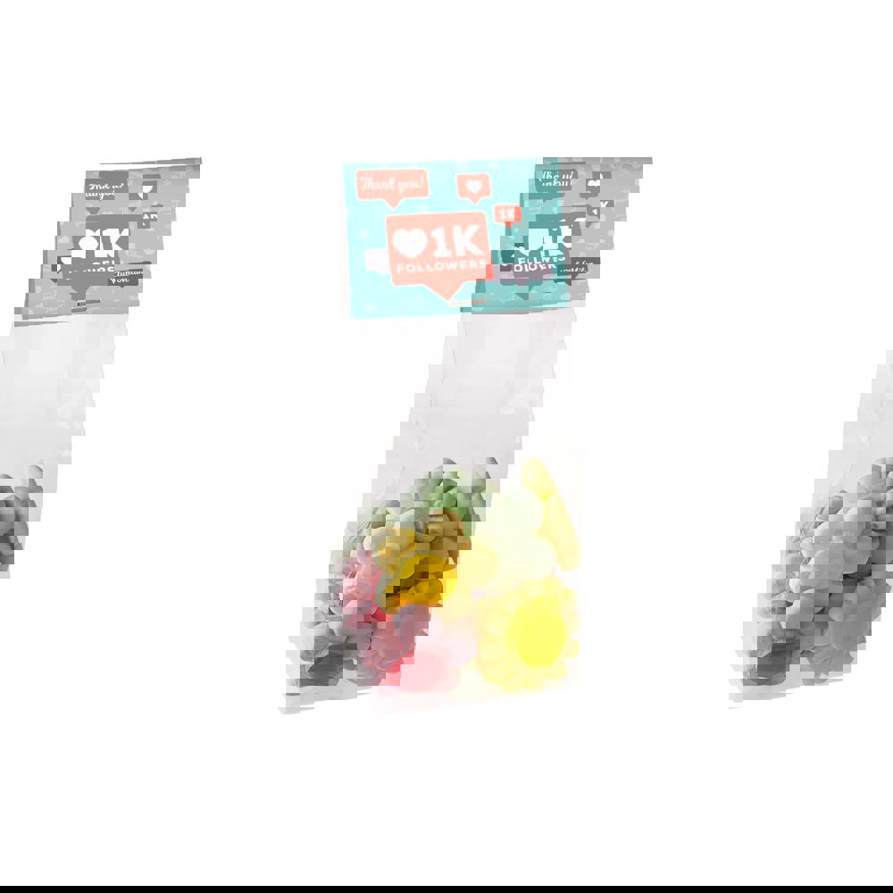 Transparent block bottom bag with full-colour printed header card, filled with approx. 100 gram... more