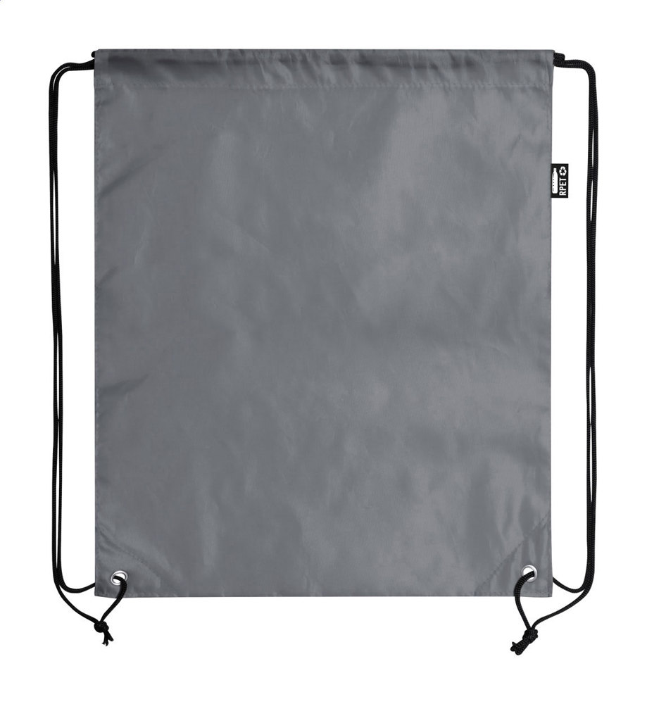 RPET polyester drawstring bag with reinforced corners. With distinctive RPET label.