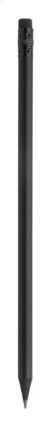 Black wood lead pencil in metallic finish, with black eraser. Sharpened, HB grade.