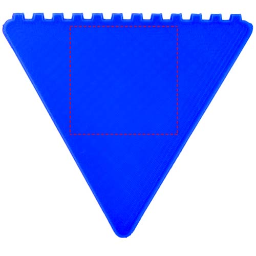 Triangular-shaped windshield scraper with a large decoration area. Each of the 3 sides can be used to remove ice from the windshield. Made in the UK from recycled plastic. The ice scraper has a speckled finish due to the nature of the recycled material.
