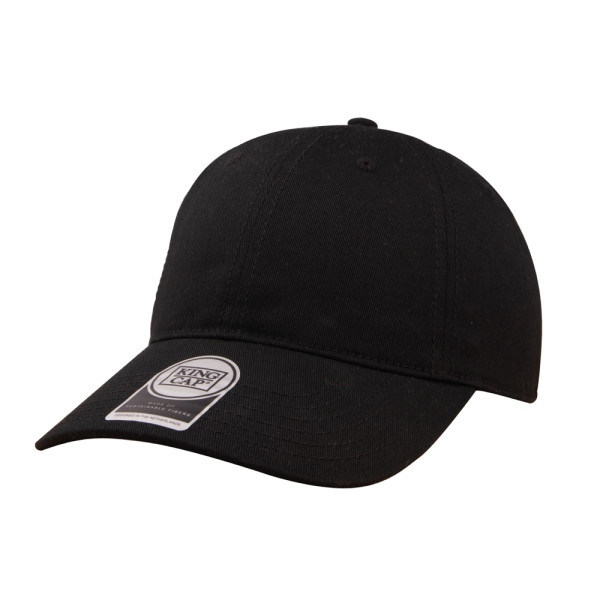 6 panel cap without front lining. Low profile. Matt black buckle and grommet. Made of recycled cotton
