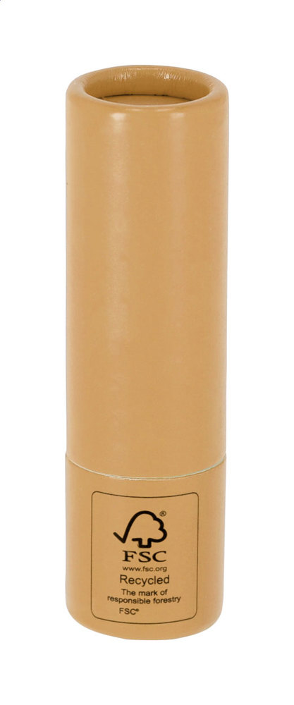 Vanilla lip balm in recycled paper holder, with SPF15 protection.