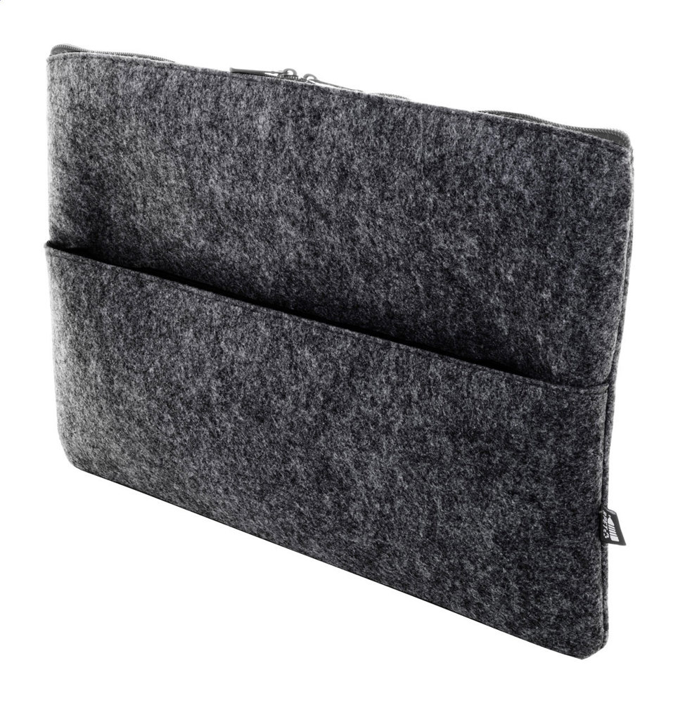 RPET felt laptop bag with zipped compartment and front pocket. Fits laptops up to 15". With distinctive RPET label.