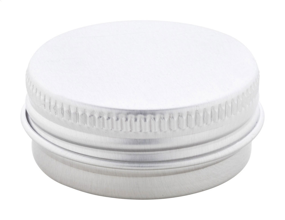 Vanilla lip balm in recycled aluminium screw-top tin holder, with SPF15 protection. The product does not contain ingredients of animal origin.
