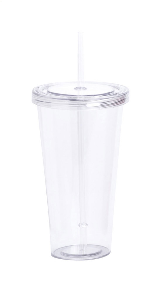 Coloured, transparent plastic tumbler cup with drinking straw, 750 ml. more