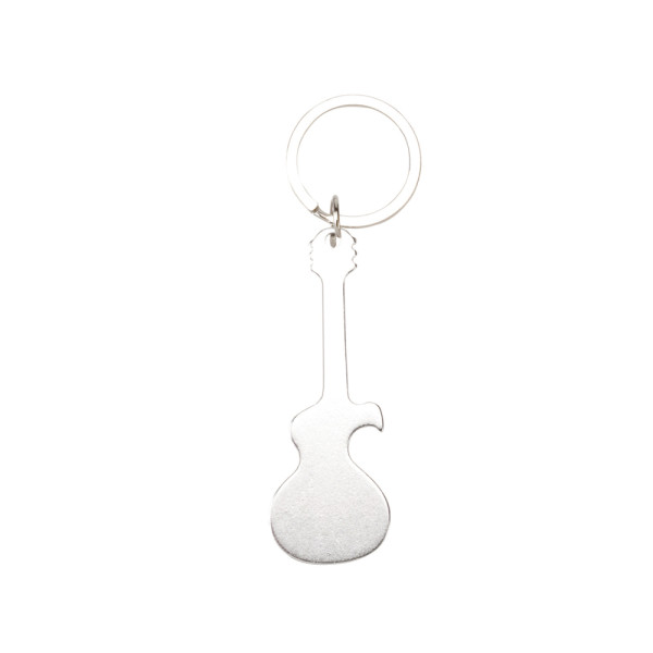 Guitar-shaped keychain with aluminum body in varied and bright tones. especially designed for laser printing.