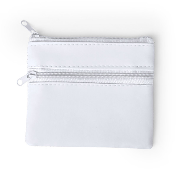 Coin purse of cheerful design with soft body finished in bright PU leather in a wide range of bright colors. Main compartment and front pockets with matching zipper closure. Matching lined inside.