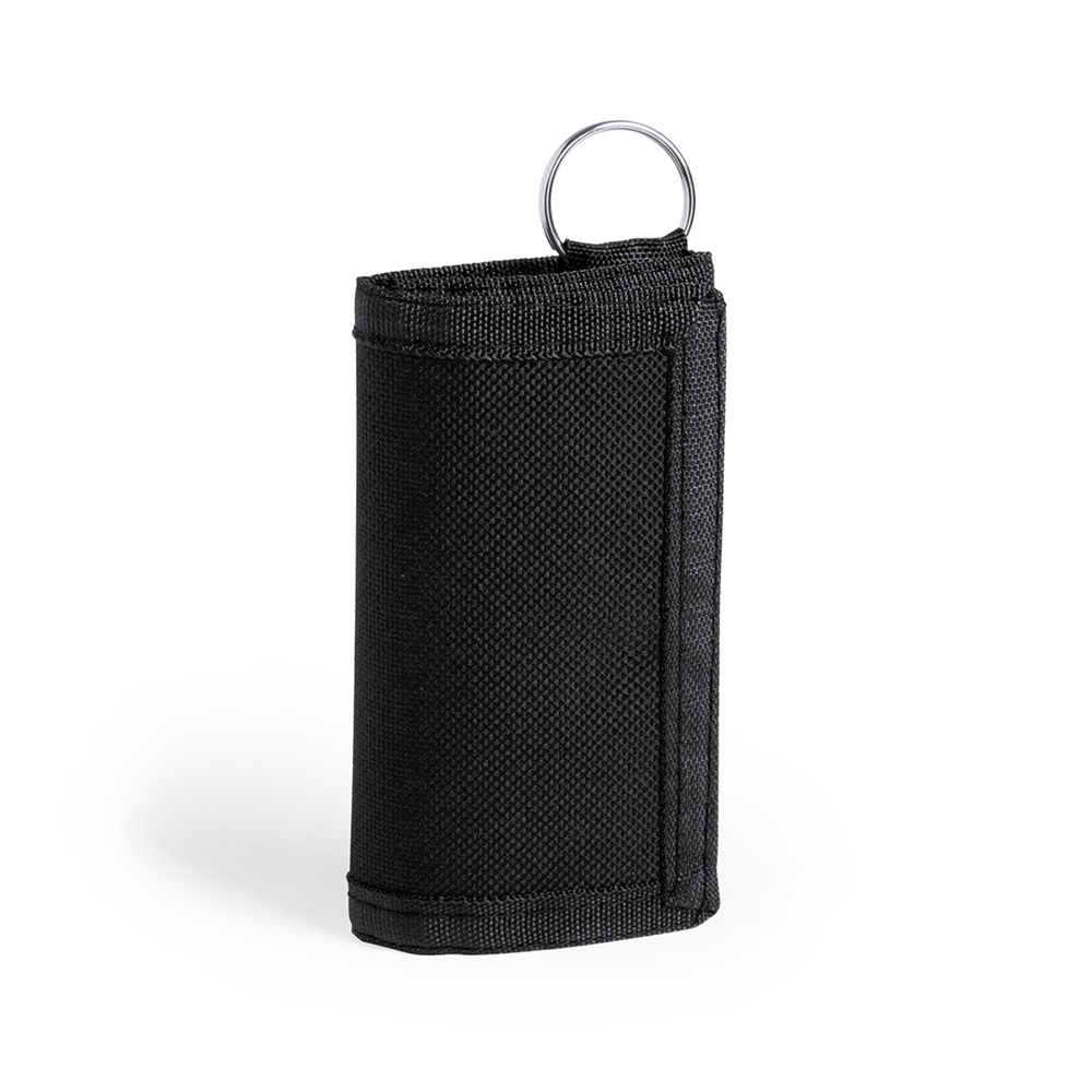 Keychain purse in resistant polyester 600D with bright tones and velcro closure. Inside with zippered wallet, card compartment and keychain.