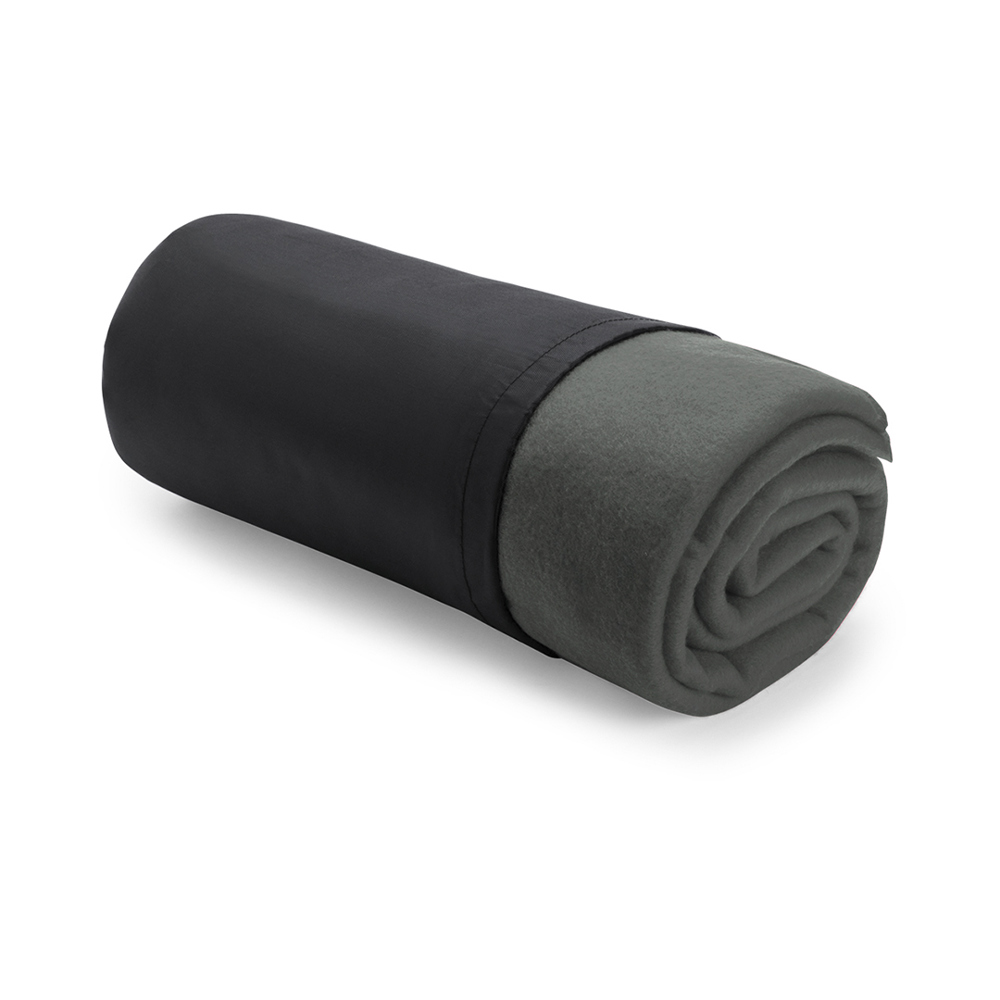 Blanket of 120x150cm in a varied range of bright tones. In polar fleece material of 180g/m2 with anti-pilling treatment and with a soft polyester, string closure sleeve.