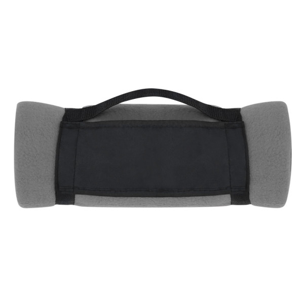 Blanket 130x160cm in a varied range of bright tones. In polar fleece material of 200g/m2 with anti-pilling treatment and carrying handle with velcro closure in soft polyester.