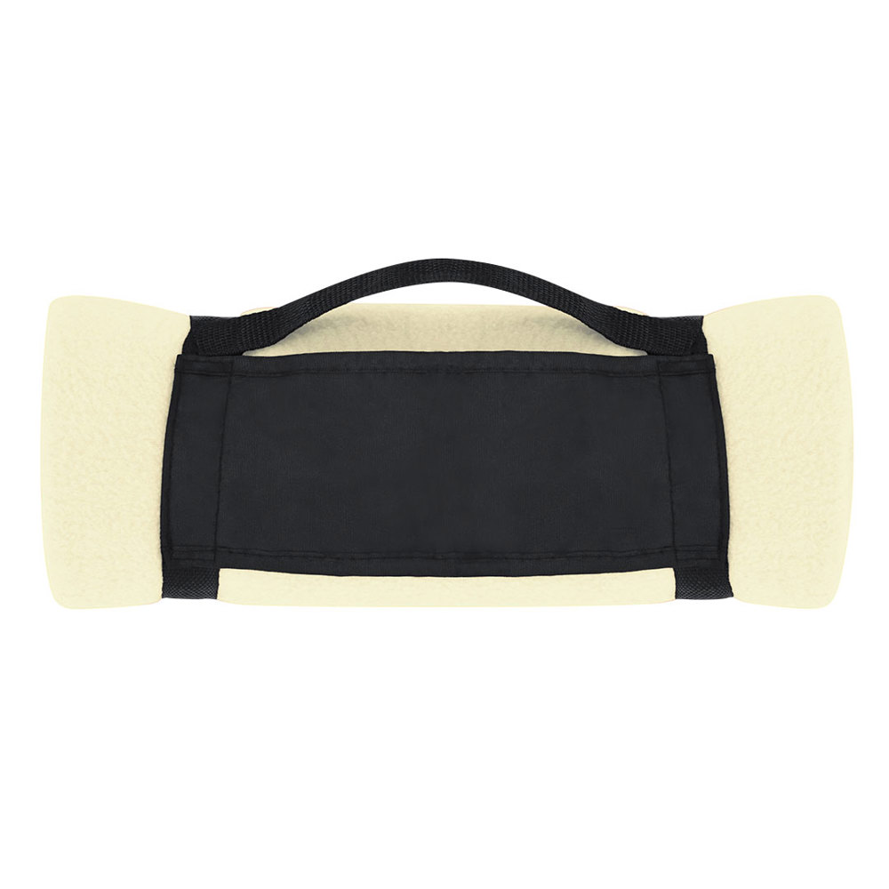 Blanket 130x160cm in a varied range of bright tones. In polar fleece material of 200g/m2 with anti-pilling treatment and carrying handle with velcro closure in soft polyester.