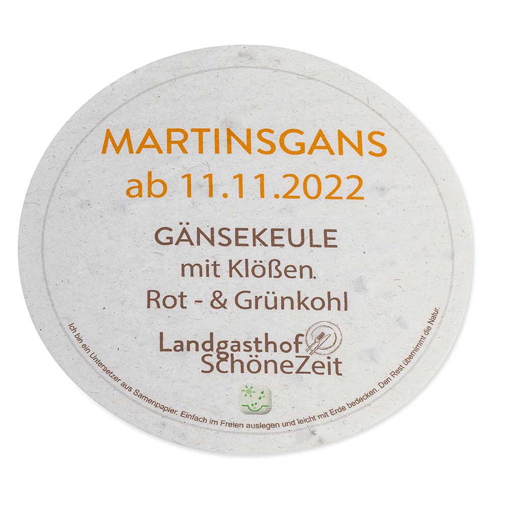 Beer coasters have a long tradition as advertising space. Humorous slogans are often printed on the coasters and the advertising is optimally perceived over a cool beer or lemonade in a relaxed atmosphere.