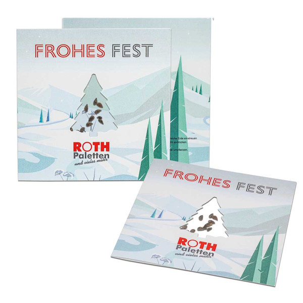 The classic Christmas symbol is used twice in this product: The flat give-away and mailing product contains spruce seeds, which arouse the recipient's curiosity through a window in the shape of a fir tree. Both sides of the square card in the practical format can be individually designed and printed and are also suitable for indirect mailing. It is a lot of fun to convey your Christmas wishes to the customer on this large advertising space.