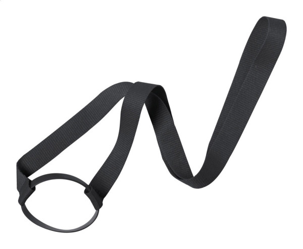 Polyester drink holder lanyard with silicone ring for bottles and cups.