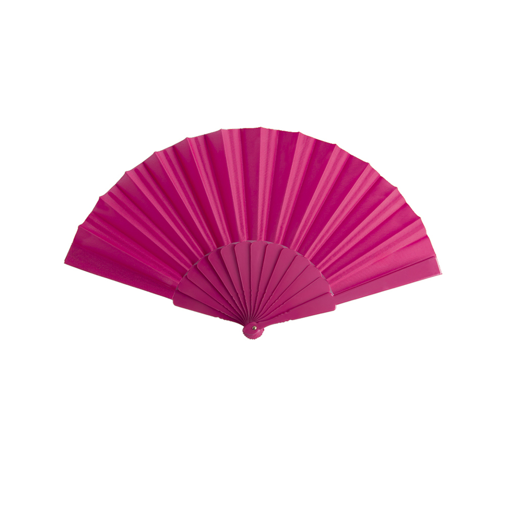 Fan with ribs made of resistant plastic and polyester fabric. Matching ribs and fabric, available in a wide range of colours. Presented in individual white box with window.