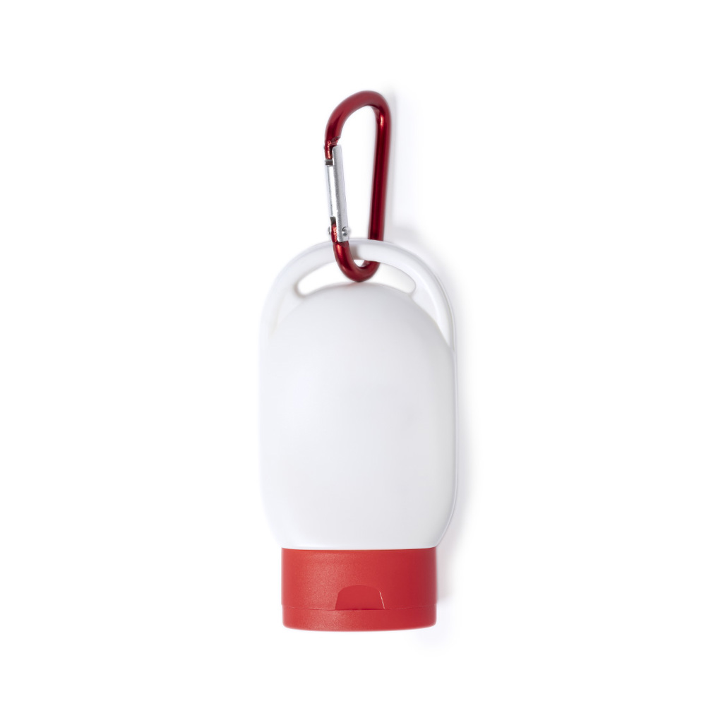 Sunscreen SPF 30. Presented in a practical 30ml jar with frosted finish. Available in a wide range of colours, with matching carabiner.