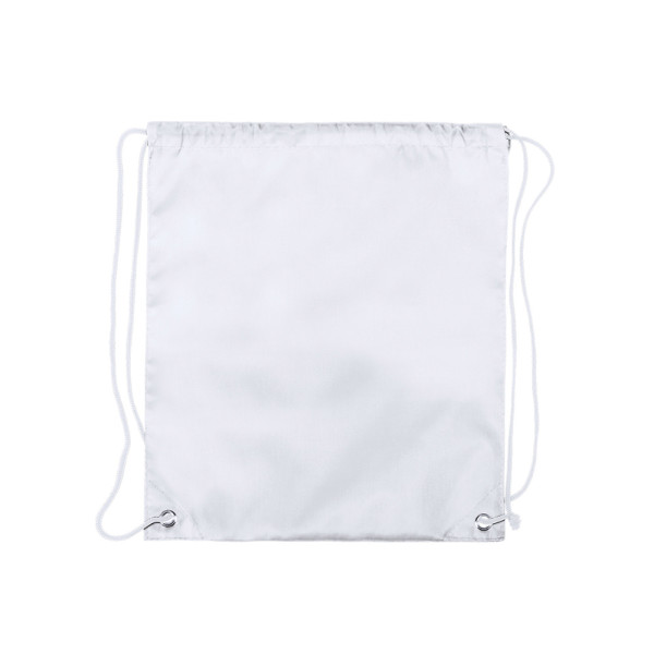Drawstring backpack for children in soft polyester 210D and in bright tones. With black self closing strings and corners with metal reinforcement eyelets.