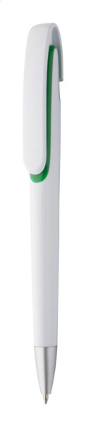 Plastic ballpoint pen with white barrel and silver tip. With blue refill. more