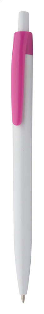 Plastic ballpoint pen with white barrel and coloured clip. With blue refill. more