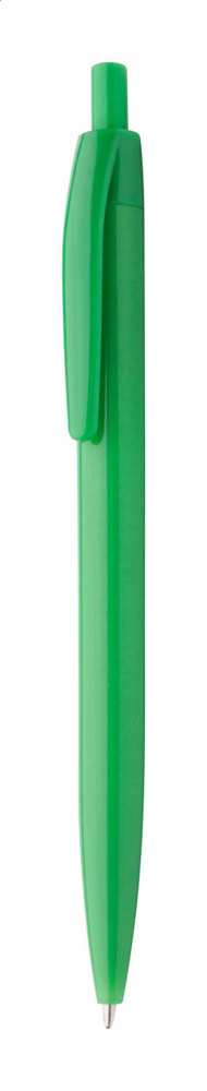 Coloured, plastic ballpoint pen with black refill.