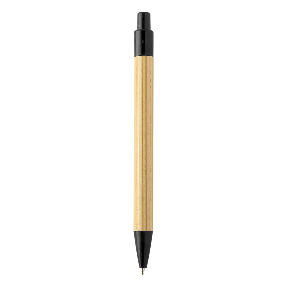 Bamboo ballpoint pen with ecological wheat straw plastic clip and tip. With blue refill.