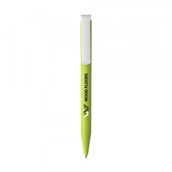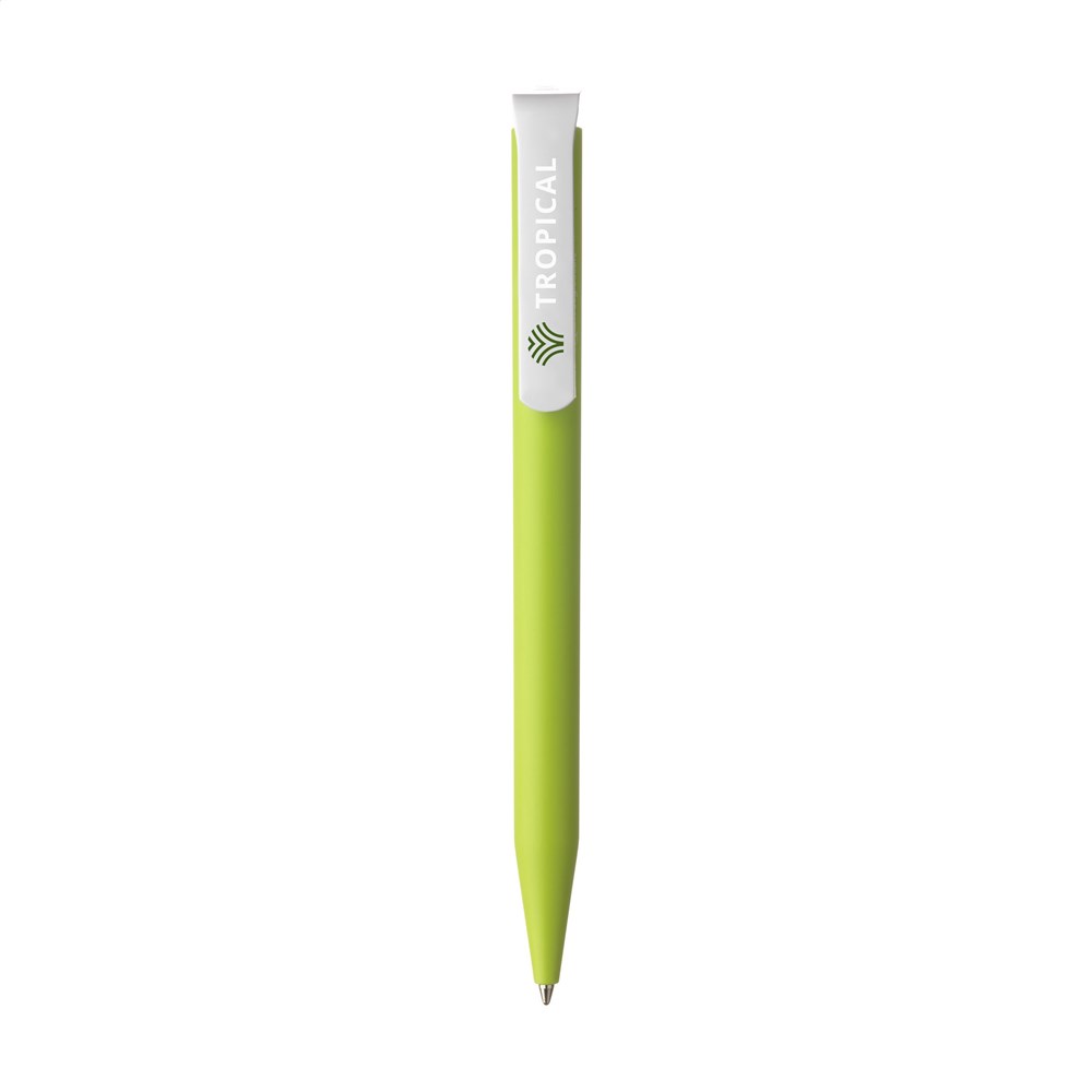 Blue ink ballpoint pen from the brand Senator®. The matt barrel is made of PLA granulate on the basis of sugarcane and is therefore biodegradable. The pen is produced using green energy and processes certified according to the ISO 14001 environmental standard. With a large clip/push button. Made in Germany.