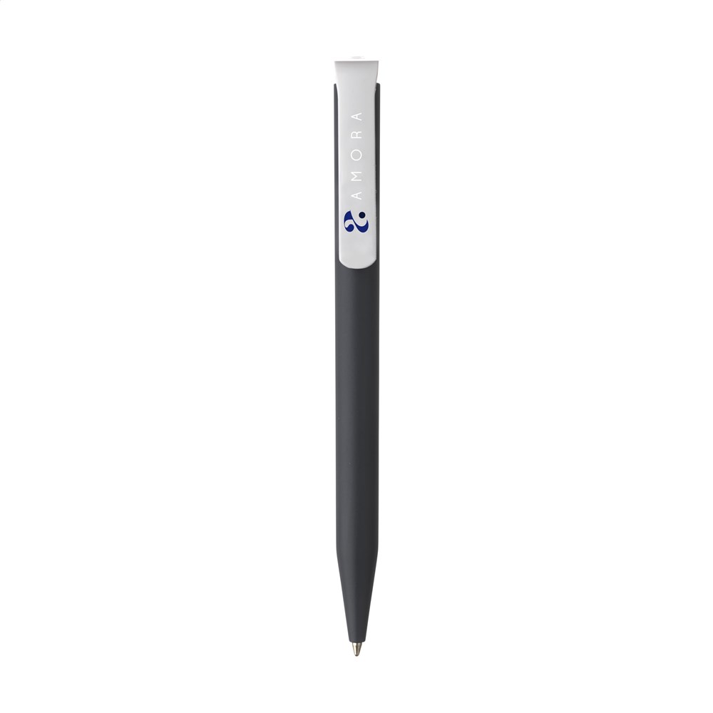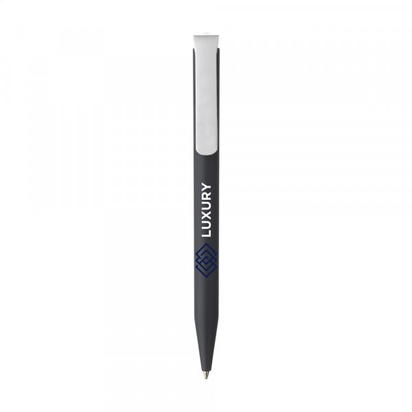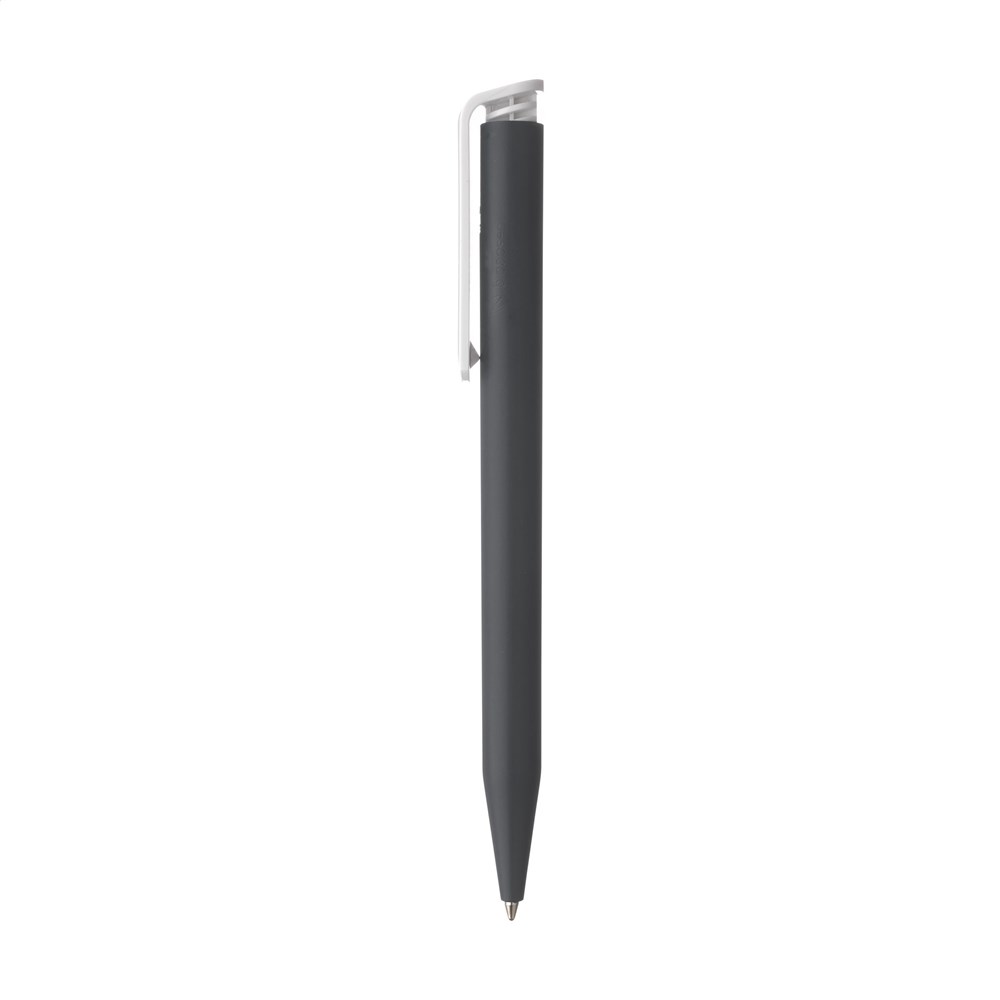 Blue ink ballpoint pen from the brand Senator®. The matt barrel is made of PLA granulate on the basis of sugarcane and is therefore biodegradable. The pen is produced using green energy and processes certified according to the ISO 14001 environmental standard. With a large clip/push button. Made in Germany.
