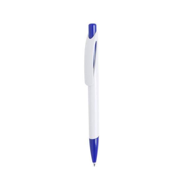 Push-up ball pen with bold bicolor design with accessories in bright solid colors and soft body in solid white. With original curved clip and matching color tip.
