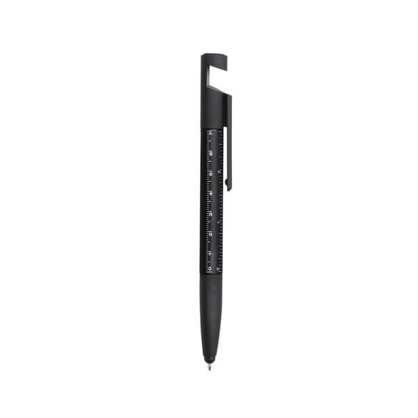 7-in-1 ball pen with twist mechanism in a wide range of bright tones. With holder for mobile device, pointer, screen cleaner, built-in ruler -cm and inches-, flat-head and cross-head screwdrivers. Blue ink.