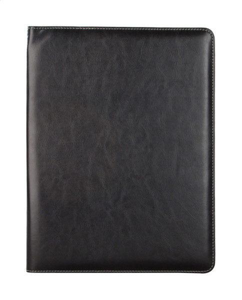 A4 sized, PU leather document folder with 20 lined sheets notepad, pen and business card holders.