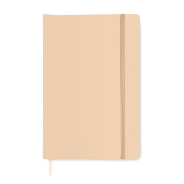 A5 notebook with hard PU cover. Casebound. 192 lined recycled paper pages (96 sheets). Matching elastic closure strap and ribbon page-marker. FSC®-certified | FSC MIX CREDIT, P7.1, FSC-C213206
