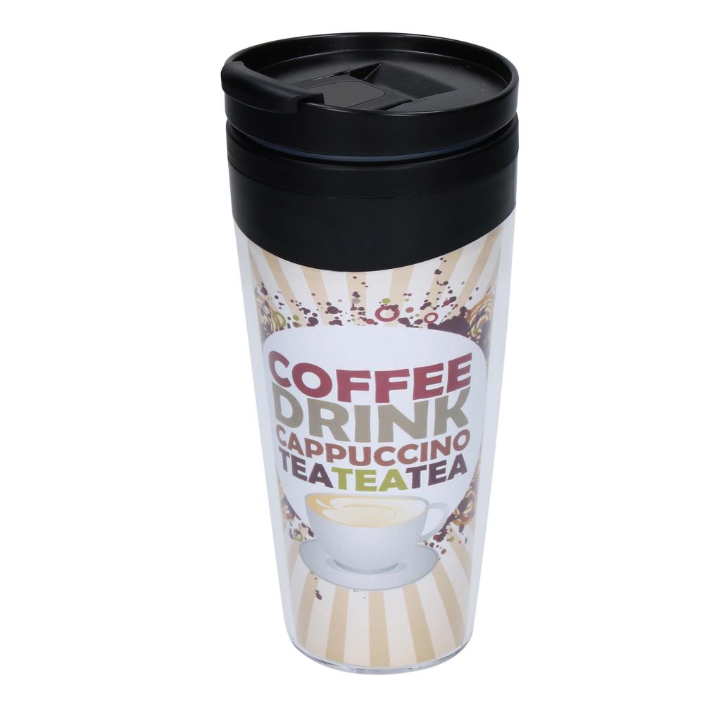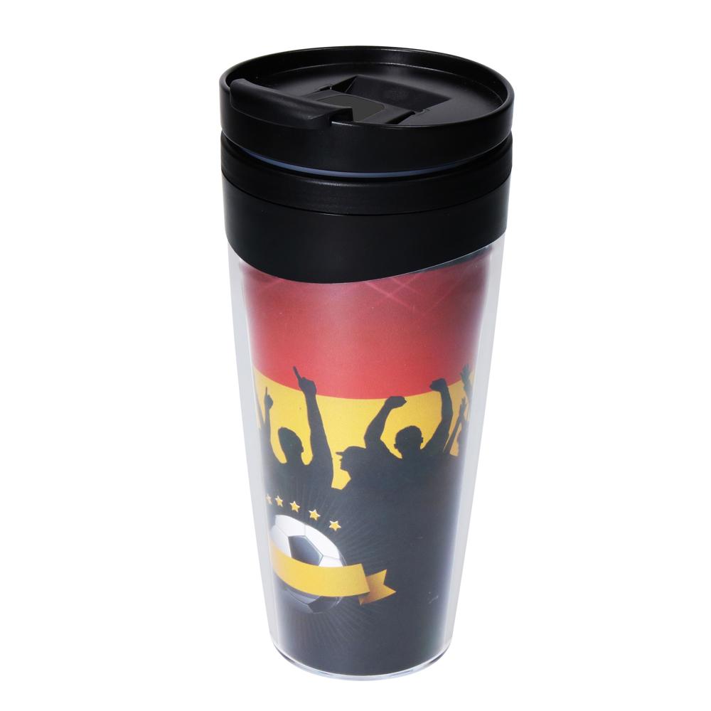 Double-walled plastic mug with screw-on lid and slightly raised rim – Made in Germany. The drinking opening can be closed separately by a hinge lid. Due to the double-walled construction, the item has good insulation characteristics and is therefore suitable for hot and cold drinks. Available in many different colors as well as transparent for paper inlays. Capacity: 0.35 liters.