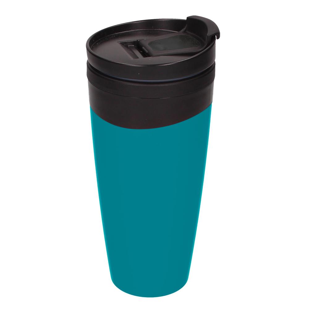Double-walled plastic mug with screw-on lid and slightly raised rim – Made in Germany. The drinking opening can be closed separately by a hinge lid. Due to the double-walled construction, the item has good insulation characteristics and is therefore suitable for hot and cold drinks. Available in many different colors as well as transparent for paper inlays. Capacity: 0.35 liters.