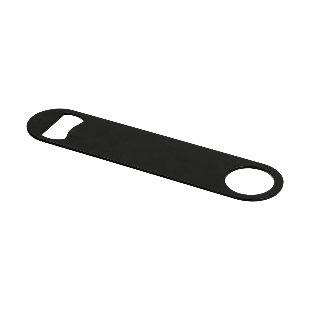 Simple, but effective. Flat bottle opener made of stainless steel. On account of the hole, it is perfectly suited for small spinner shows behind the bar. In addition, it can be attached well to magnetic surfaces.