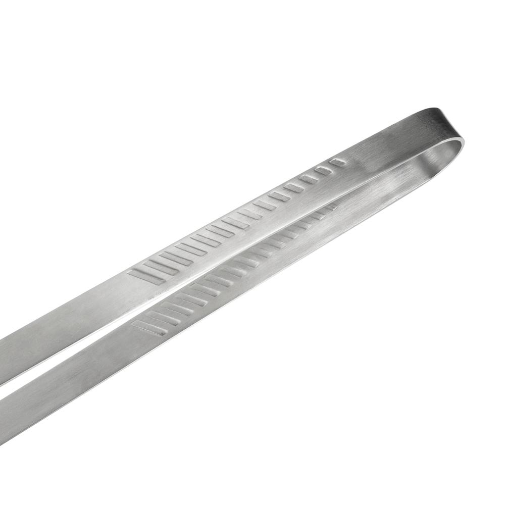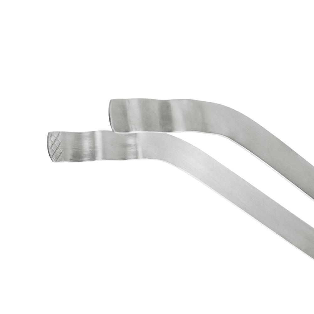 The classically curved grilling tongs are a handy assistant when grilling or in the kitchen. The notches on the handle and the spring tension ensure optimum handling. The ribbed and internally textured ends of the tongs ensure a safe grip on the food. In matte stainless steel.