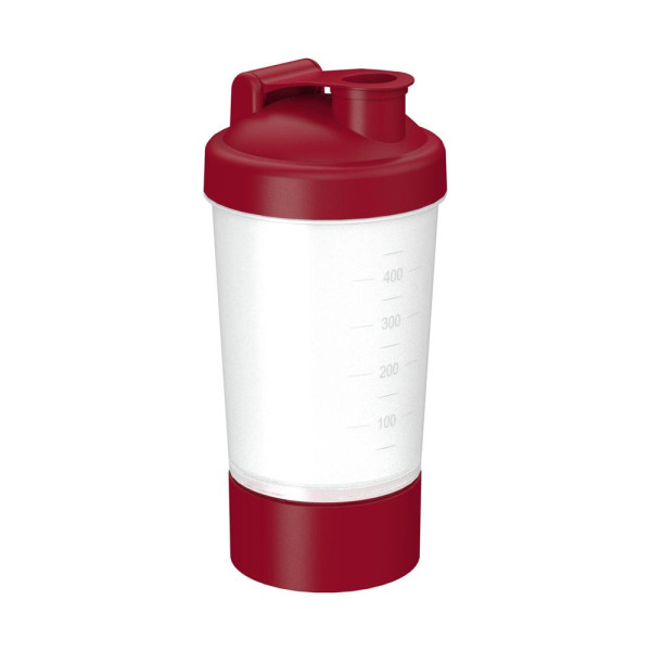 Shake it up! Ideal for a protein shake after training. This shaker contains a closable drinking aperture and an embossed measurement scale in 50ml increments. It also comes with a removable sieve, so a thorough shake is all that's needed for the perfect mix of protein powder and liquid. This shaker also has a screw-off compartment which can be filled separately. It can be completely disassembled, making it very easy to clean. Fill quantity (shaker without additional compartment): 0.4 litres.