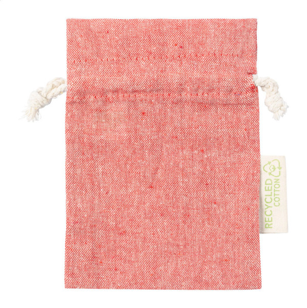 Recycled cotton gift bag with drawstring closure. With distinctive recycled cotton label. 100% recycled cotton, 120 g/m².