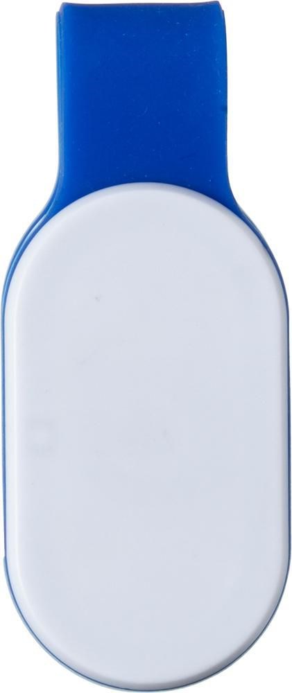 ABS safety light with COB LED lights in both white and red. With strong magnets, the front and back are connected by a silicone strap. Batteries included.